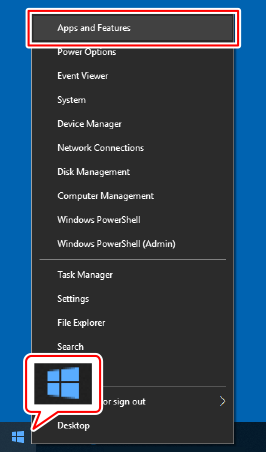 Щелкните правой кнопкой мыши в нижнем левом углу рабочего стола, а затем выберите [Программы и компоненты] в меню. [Программы и компоненты] также можно открыть путем нажатия клавиши [X] при нажатой клавише [Windows].